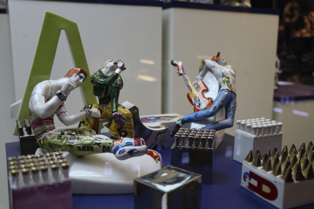 Многие удивятся, увидев на выставке знакомое имя Михаила Шемякина, ведь прославленный художник работает еще и с фарфором. Эти статуэтки — часть «Фарфорового театра» — проекта, который он реализовал совместно с ИФЗ и представил на международной парижской выставке несколько лет назад. Балет «Щелкунчик» Чайковского, поставленный в Мариинском театре с декорациями и костюмами работы Шемякина, вдохновил автора на создание коллекции фарфоровых персонажей, любимых всеми с детства. Эти статуэтки отличают филигранная проработка деталей в традициях европейского фарфора 18 века и особый колорит росписи.