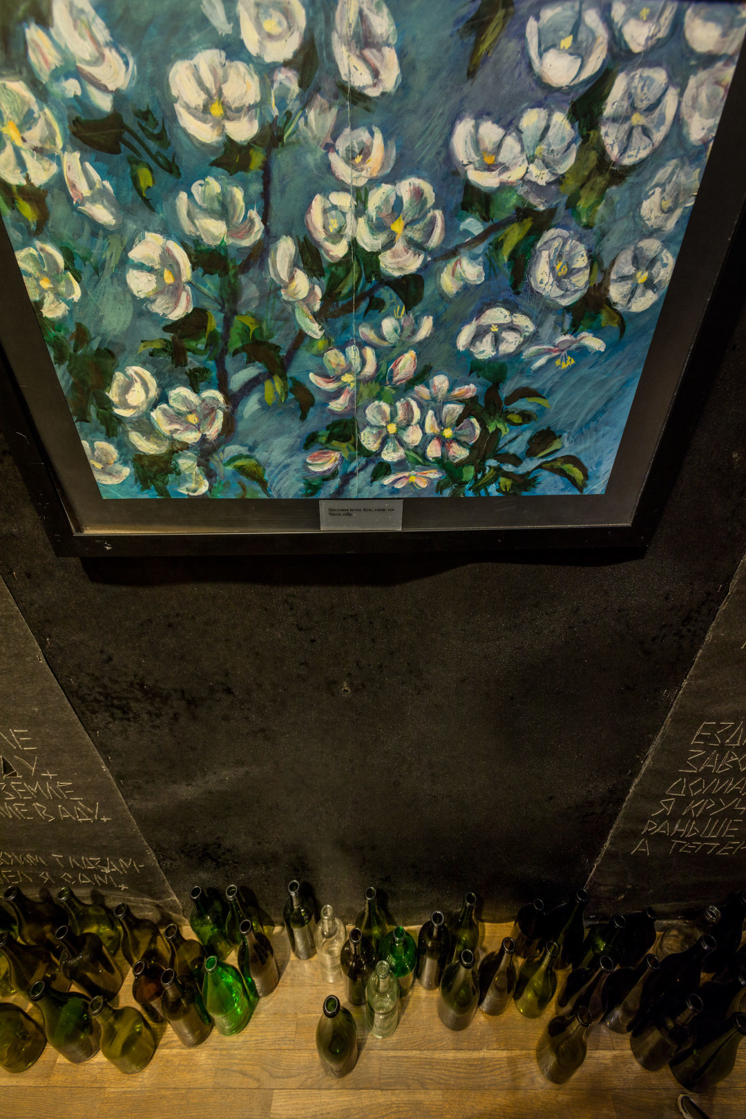 Выставка-инсталляция о жизни поэта и художника, в которой переплелись графика, прорезанные на черных листах строчки про «Девочка красивая в кустах лежит нагой», а также фотографии и бесконечные ряды бутылок и стаканов. Кураторы хотели показать Григорьева-художника, но благодаря художественному решению Сергея Падалко зрители увидели Григорьева-человека.