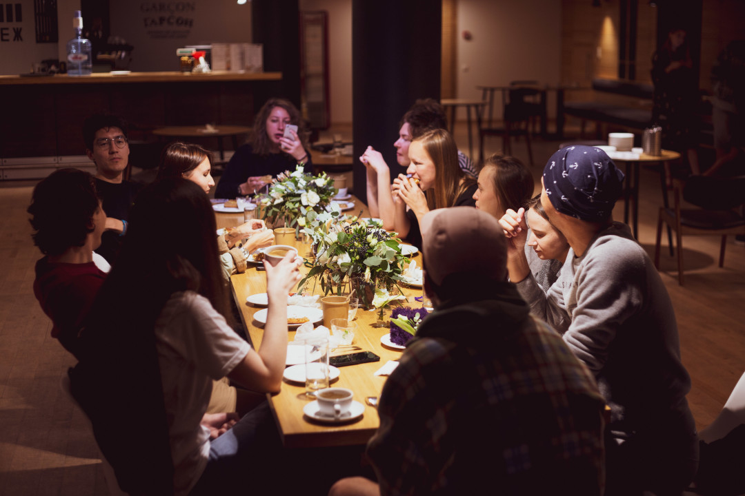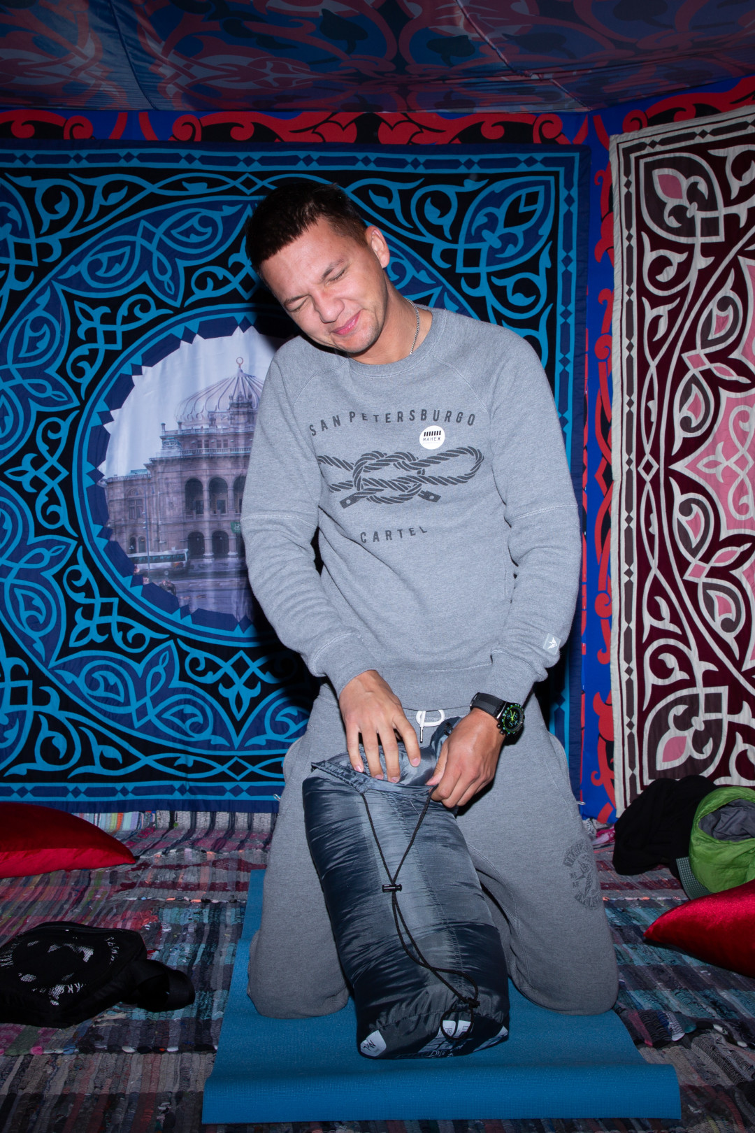 Летом петербуржец выезжает на природу с палаткой, чтобы оказаться в полной тишине вдали от толп людей. Ночь в Манеже — то же самое, только вместо природы — экспозиция самой известной российской арт-группы AES+F. Участники собираются в выставочном зале в 21:00 с пенкой, спальником, теплыми вещами, зубной щеткой и пауэр-бэнками. Следующие 11 часов придется прожить в опасной близости от искусства в команде 20 людей, прошедших строгий отбор — почти как в survival camp. Только программа похожа на милейшую пижамную вечеринку: чаепитие с печеньками, украшенные цветами столы в кафе, арт-медиация и медитация, утром — завтрак с круассанами и гранолой. Никакого алкоголя — тут вспоминаются толпы нетрезвых граждан на «Ночи музеев». Зато можно самому себе «собрать» безалкогольный коктейль-гадание «Предсказания и откровения» от ребят из бара bolshoybar. Мой оказался перченым, например. Но самое важное в тайм-лайне — возможность посмотреть выставочный блокбастер без шума и толпы, так, будто черные и блестящие «Ангелы и демоны» стоят у вас в гостиной. То есть на одну ночь переодеться в шкуру коллекционера contemporary art — привилегию идти чистить зубы мимо аеэсовских идеально красивых подростков (юный Данила Поляков) обычно покупают за приличные деньги.