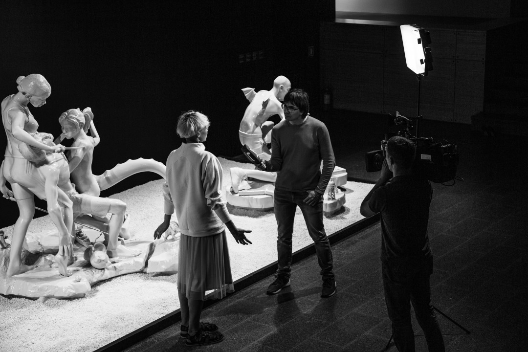 Отбой начинается в 2:30 под камерами телеканала, который снимает про «Ночь» сюжет — почему-то смешно, что телеведущая на шпильках, у нас тут все по-домашнему. Заснуть удалось мгновенно — волшебная сила медитации, видимо. Каково спать внутри искусства? Отлично. Просыпаться — не очень. Воскресное утро началось в 8:30, из-за затемнения сквозь частично стеклянный потолок свет в залы не проходит. Кажется, что еще ночь, хочется сказать: «мам, мне ко второму уроку». Светская беседа за вечерним чаем не очень складывалась. За завтраком обсуждение самого странного арт-опыта в жизни перетекает в обычный разговор о том, кто где работает. Рядом со мной едят круассаны проектировщик заводов и сотрудник НИИ. «Я сидел на работе допоздна и рефрешил почту — ждал письма от Манежа. Ушел домой расстроенный, и тут звонит Ольга, куратор «Ночи»: вы наше письмо прочитали? В спортивном магазине консультант, конечно, удивился, узнав, что спальник и пенка мне нужны не для похода» — рассказывает сотрудник логистической компании. Он полюбил AES+F еще 12 лет назад, когда статую «Первый всадник» — девочка верхом на тиранозавре — установили перед Мраморным дворцом. Невероятно, но факт: пообщаться с новыми приятными людьми для участников «Ночи в Манеже» чуть ли не важнее эксклюзивного созерцания «Последнего восстания» в одиночестве.