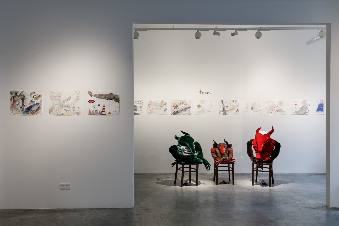 Галерея Марины Гисич существует уже 20 лет и представляет российское современное искусство на ярмарках Art Miami и Contemporary Istanbul. Сейчас там выставляют проект Аси Маракулиной «Железные нотки»: микс из рисунков художницы и их «материальных» воплощений: сшитой из плюша цепи, платьев, расчерченных в тетрадную линейку и табуретки-кнопки.