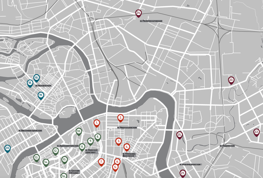 Команда Art Weekend распределила галереи, выставочные площадки и artist-run пространства по 4 маршрутам: район метро «Чернышевская», окрестности Невского проспекта, Петроградская сторона и Васильевский остров, а также северо-восточная окраина города. Получился первый за несколько лет полный гид всех мест города, связанных с современным искусством — 24 точки. Вы можете прогуляться по ним самостоятельно или присоединиться к туру с арт-медиаторами. Если вы зайдете в любую точку маршрутов в 12:00, 14:00, 16:00 или 18:00, то вам проведут экскурсию по пространству его кураторы. Все галереи и пространства работают с 12:00 до 20:00 (кроме Академии им. Штиглица). Полную программу и карту можно скачать тут.
