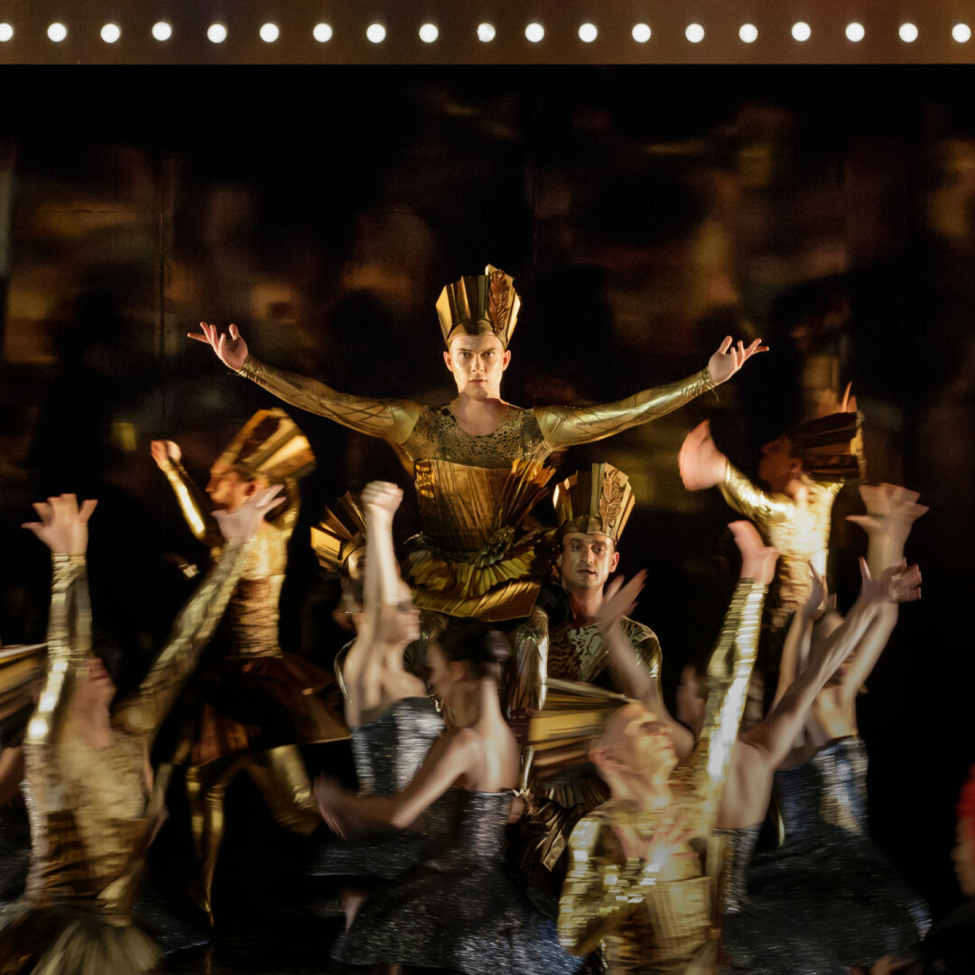 Формально «золотомасочный» спектакль худрука Урал Опера Балет Вячеслава Самодурова имеет отношение к забытому (и утерянному) балету Мариуса Петипа. На самом же деле это — концептуальная игра, эксперимент и попытка хореографа понять, как работает крупная форма в балете сегодня и на что она готова, чтобы удержать внимание зрителя. Например, на комичные трюки, высмеивающие барочные работы, или на смену декораций с причудливого дворца Короля-Солнца на минимализм и лаконичность, а классических па на современную хореографию. И все это — в одном эклектичном пространстве единой постановки.