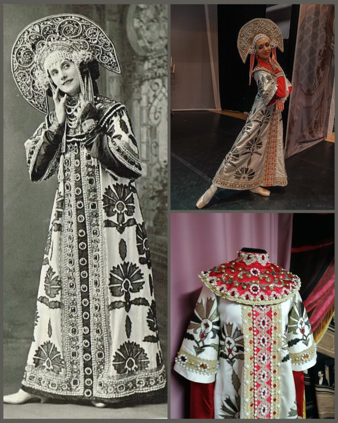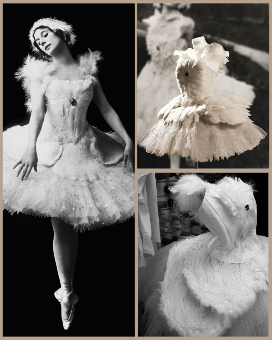 В хайлайтах постановок — культовые туалеты Анны Павловой: копия костюма (оригинал — в Лондонском музее) по эскизу Ивана Билибина для балета «Русская», Украшенная перьями балетная пачка с алой «кровоточащей» брошью Леона Бакста для миниатюрной сольной композиции «Умирающий лебедь», а также костюмы Бакста для «Павильона Армиды» дягилевских «Русских сезонов».