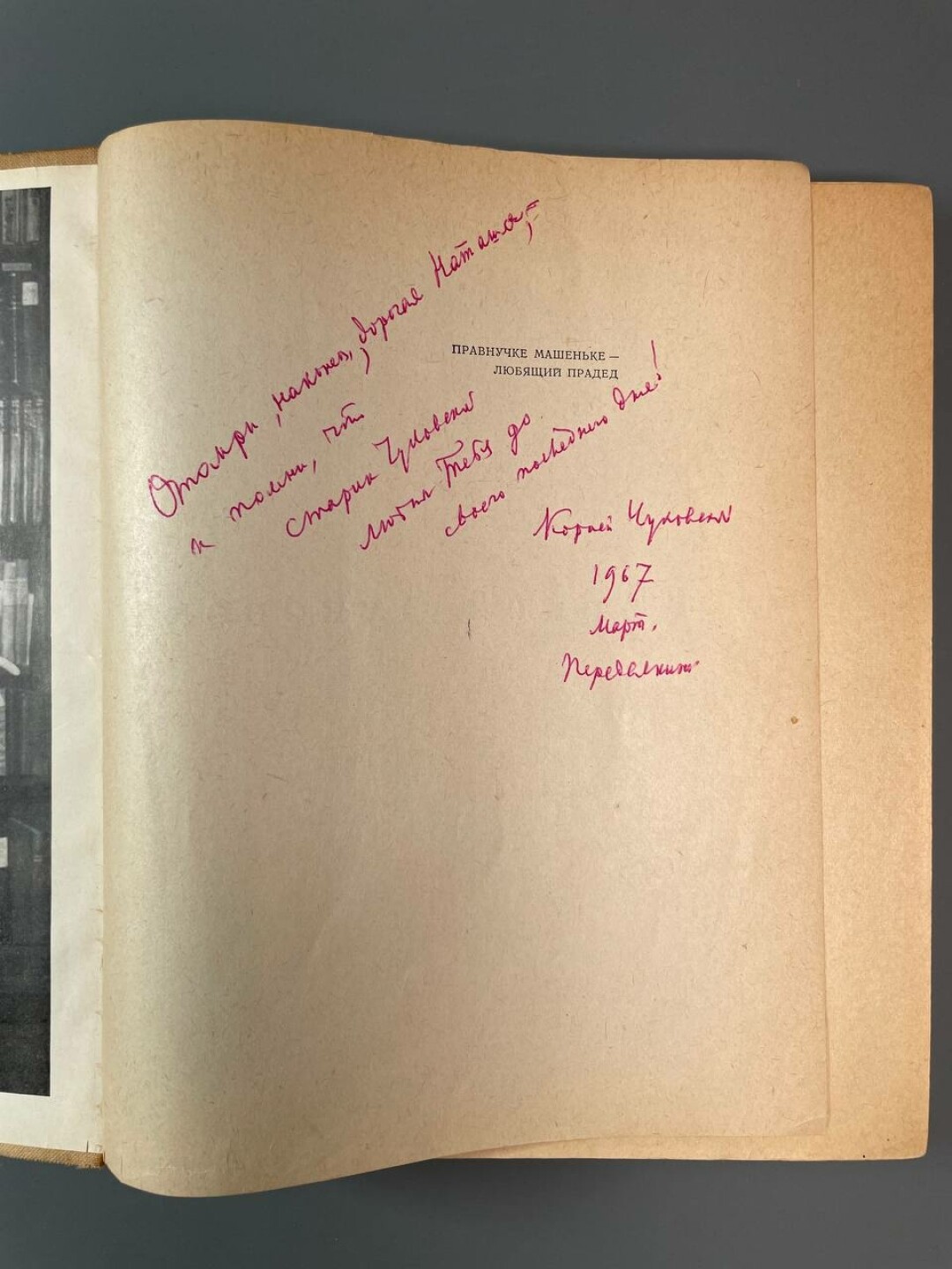 «Так я и стояла, скрючившись на одной ноге, довольно долго, пока он не спустился с лестницы — очень медленно — и не протянул мне книгу, на титульном листе которой я увидела надпись, начинающуюся словом "Отомри". (...) Я забыла обо всем этом — и вдруг, через несколько дней после его смерти, складывала книги, чтобы переезжать на новую квартиру, и нашла последнее издание "От двух до пяти" с бесценной для меня надписью, начинающейся словами: "Отомри, наконец, дорогая Наталья…"», — поделилась своим воспоминанием Наталья Григорьевна Долинина. Именно для нее Корней Иванович Чуковский оставил дарственную надпись в книге.