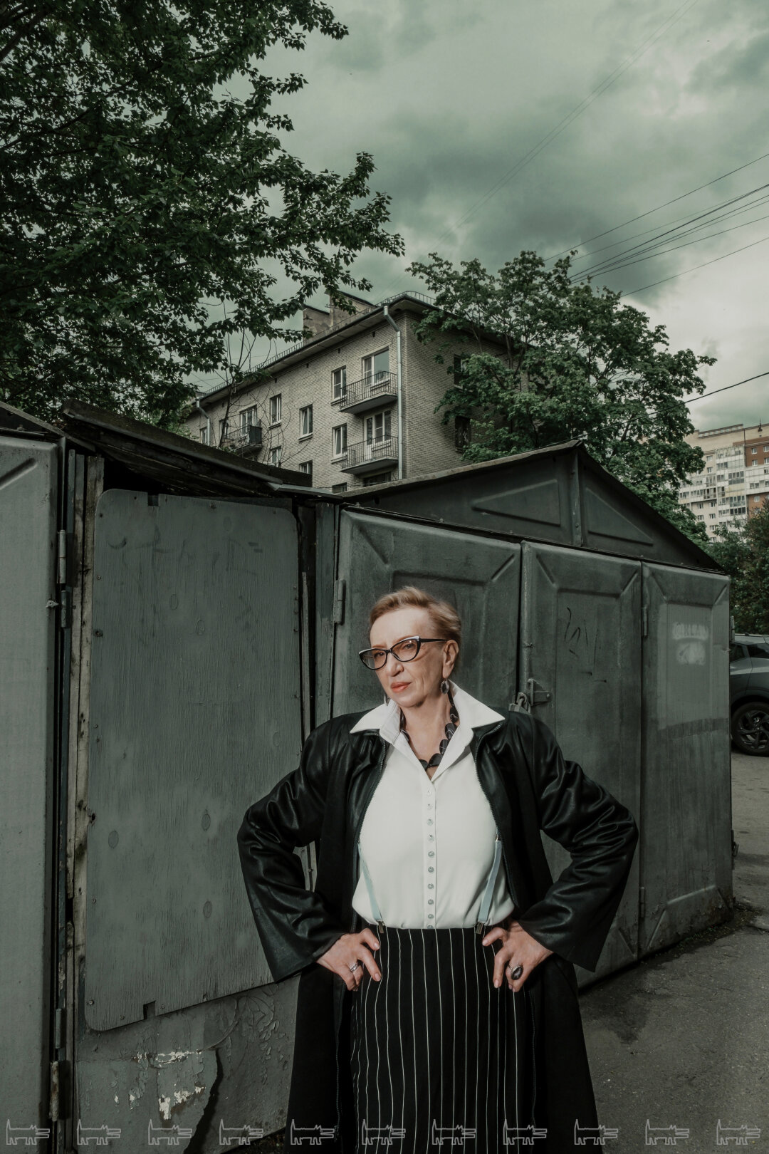 ![]() | Наталия сфотографирована во дворе района хрущевской застройки на улице Беринга Васильевского острова. Гаражам посвящен один из сюжетов новой книги Лебиной: вместе с их появлением «автолюбительство постепенно демократизировалось, превращалось из изысканного занятия представителей советской элиты в досуг обычного человека». |