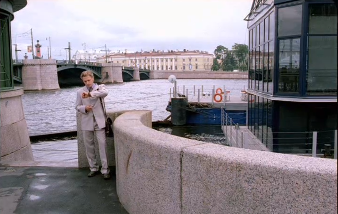Важная для фильма локация: герой Евгения Цыганова говорит с расставшейся с нелюбимым женихом Машей. Она совсем рядом, но он снова этого не знает. Сидя на решетке моста, Максим решает остаться в Петербурге, понимая, что переезд — это побег от себя.