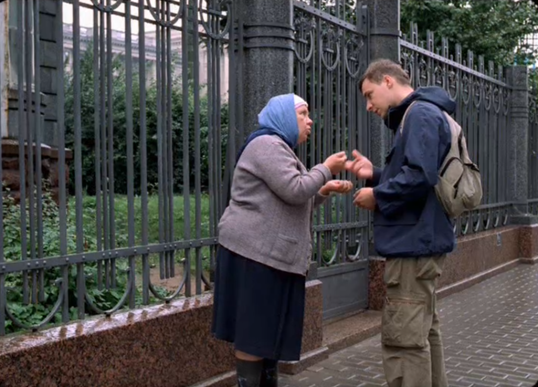 У решетки дома ушлая бабушка просит сначала Максима, а потом Машу помочь с подсчетом сдачи с 10 рублей.