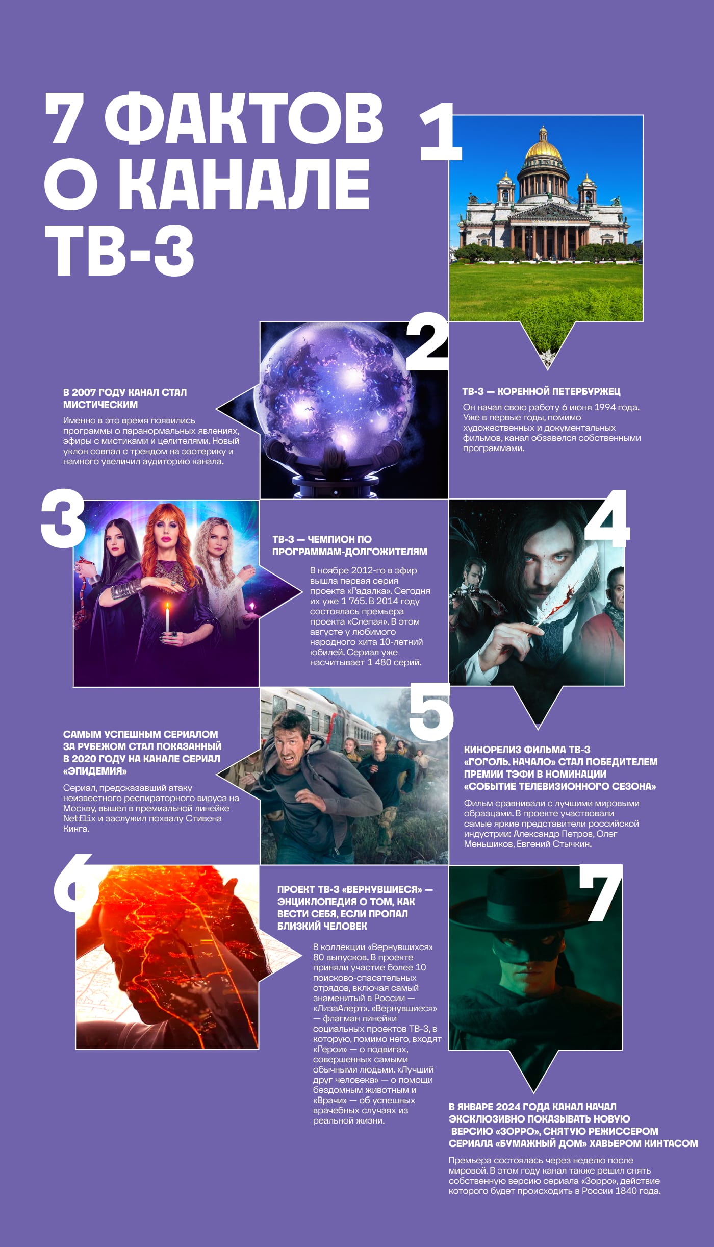Родиться в Петербурге, повзрослеть в Москве, покорить мир — и все это к тридцати годам. Накануне юбилея рассказываем об идеальном телевизионном миллениале, мистике и сериальных дел мастере — канале ТВ-3. Юбилейный сезон ТВ-3 будет посвящен суперспособностям, физическим и духовным. Мы поговорили с главными лицами канала, сделали обзор флагманских проектов и рассказали о 7 самых интересных фактах о ТВ-3, которые очень красноречиво рисуют его масштаб.
