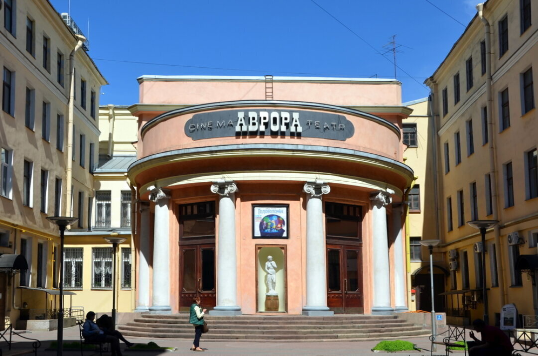 В декабре 1913-го года во дворе доходного дома книгоиздателя Глазунова открылся самый передовой синематограф в городе «Пикадилли». В 1930-м его переименовали в «Аврору» — кинотеатр стал одним из первых в СССР показывать звуковое и цветное кино. За 111 лет он пережил две революции, Великую Отечественную войну, блокаду Ленинграда и по сей день является важным местом для петербуржцев.