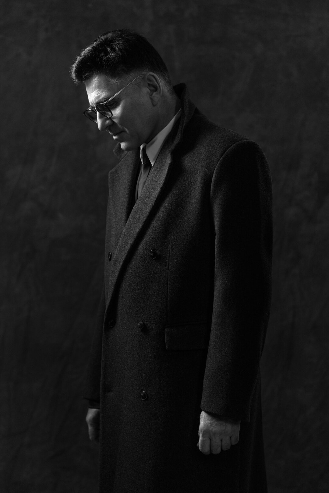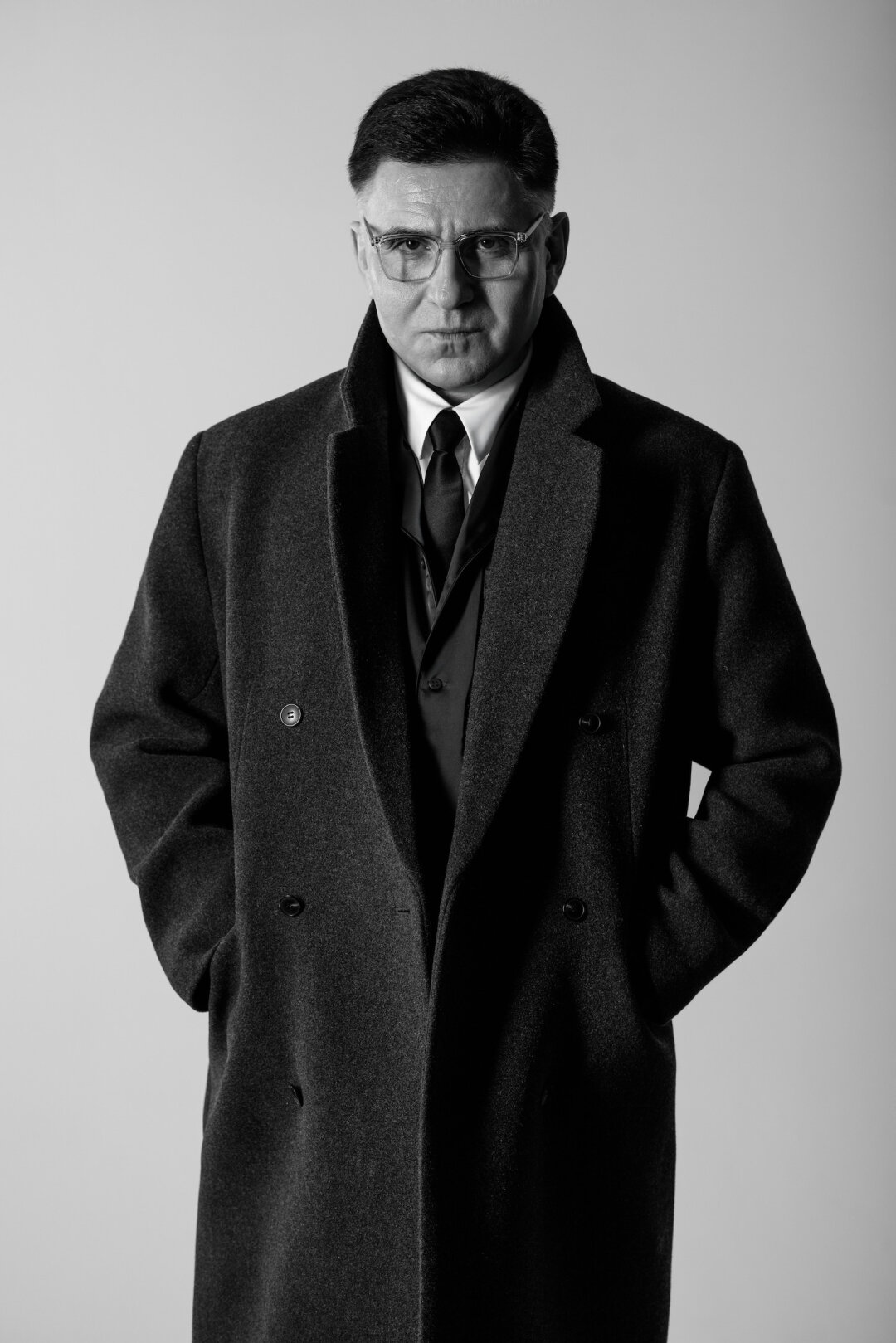 Первый образ: пальто Lime, белая и бордовая рубашки, брюки Gate31, галстук His Story, обувь Lime. Второй образ: пальто-пиджак Asia ST71, пиджак, брюки и обувь Lime, очки Ugol Optics.Третий образ: костюм His Story, рубашка Lime.Четвертый образ: пальто Asia ST71, рубашка Gate31, брюки и обувь Lime, очки Ugol Optics.