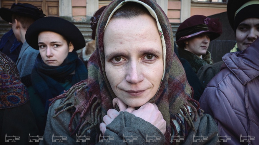 В Петербурге условия съемок были гораздо легче. Но была одна сцена на Дворцовой площади, где массовка должна по сюжету стоять под дождем, добиваясь своего. В этот день была ужасная погода — начало марта, холод дичайший, а у нас оканчивается время. И вот в течение трех часов ночью их поливают из водометов, а они стоят и действительно держатся, и помогают друг другу. И даже сейчас, насколько я знаю, все девочки дружат, общаются, обмениваются письмами и жалеют, что это все закончилось».