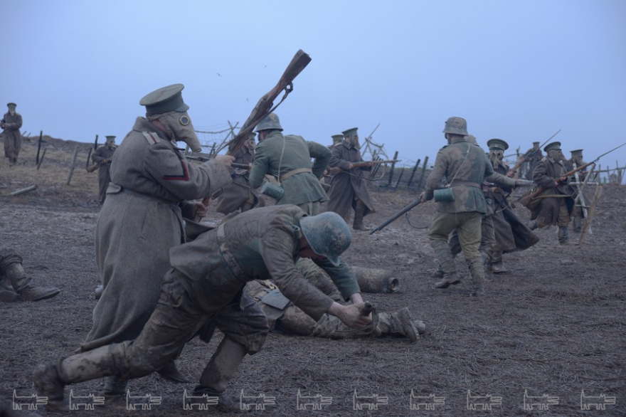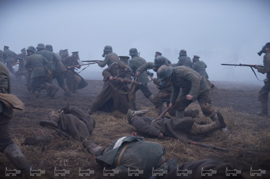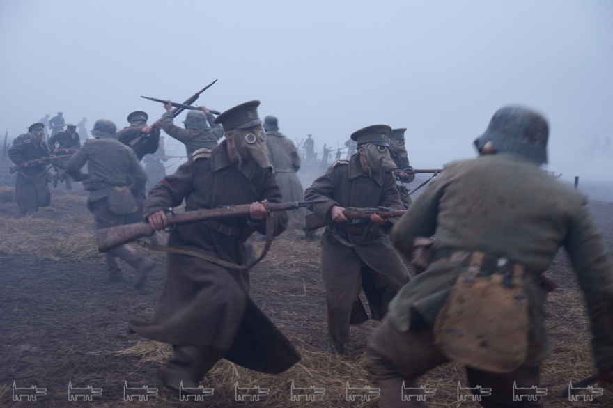 Большая часть съемок проходила в Псковской области. Декораторы прорыли почти полтора километра окопов по архивным фотографиям и фортификационным чертежам времен Первой мировой войны. И если в немецких окопах из бетона и ивовых ветвей был водопровод, а изнутри они оклеивались обоями, в русских никакого комфорта предусмотрено не было.