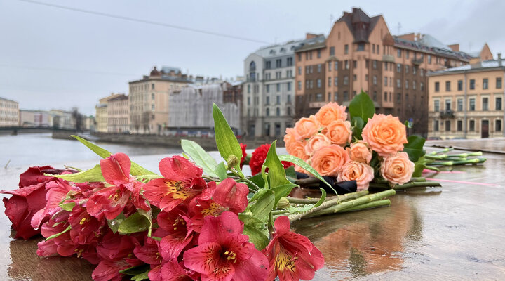 Петербуржцы организовали на Египетском мосту стихийный мемориал основателю рэп-группы Krec Артему «Fuze» Бровкову*, который погиб в США в результате аварии 1 апреля. Фотографии исполнителя, свечи, цветы и колонка с музыкой появились на набережной Фонтанки 3 апреля. Днем 4 апреля на мосту около дома Капустина, известного по фильму «Питер FM», остались уже только цветы, убедился корреспондент Собака.ru.