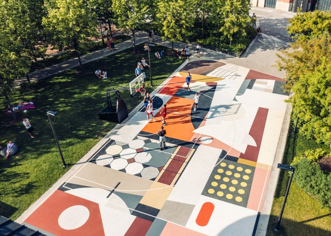 В общественном пространстве есть площадка для стритбола (арт-проект художника Алексея Лука). В оформлении артист использовал цвета и образы старого Петербурга: оттенки штукатурки, метлахскую плитку, дворы-колодцы, гранитные набережные, паркет коммунальных квартир, кирпичные склады — в общем, все то, что мы так с вами любим! Поиграть в стритбол можно бесплатно, если есть свой мяч, в часы работы общественного пространства. Если подходящего инвентаря нет — его дают напрокат.