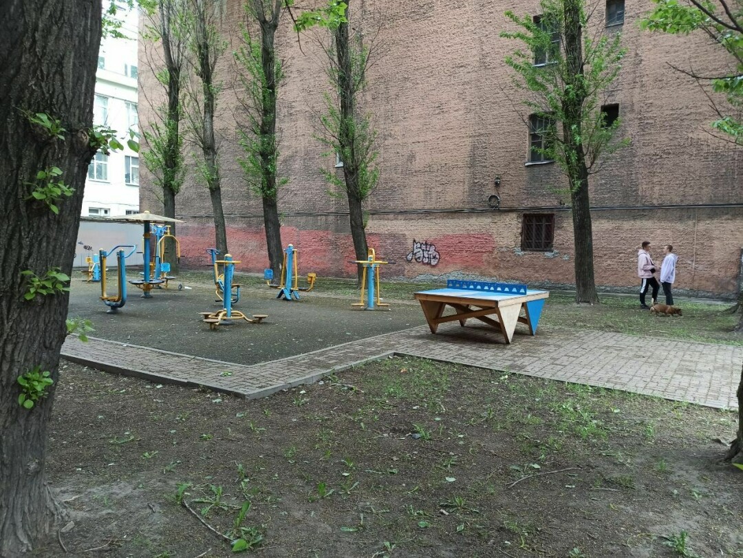 Участники добрососедства Семенцы благоустроили двор у клуба «Космонавт» в прошлом году — с летним амфитеатром, столом для тенниса, домом для кошек. Недавно часть объектов благоустройства уничтожили из-за жалобы местного жителя на портале «Наш Петербург». Жителям Семенцов удалось спасти арт-объект «Елка в углу», дом для кошек «ЖК Усатов» и (!) стол для пинг-понга. На радость всем поклонникам сквера стол для пинг-понга перенесли во двор Бронницкой, 28. Там можно играть в любое время. Правда, спортивный инвентарь необходимо взять с собой.