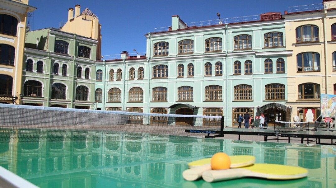 Во дворе Большого Гостиного двора можно бесплатно поиграть в пинг-понг, шахматы, шашки и нарды, бадминтон. Есть тренажер для тренировки равновесия (balance board). Инвентарь выдают на информационной стойке в центре пространства. Но для этого необходимо оставить администратору залог: от 500 рублей — за шахматы и шашки, до 2000 рублей — за балансборды (его возвращают в полном объеме).