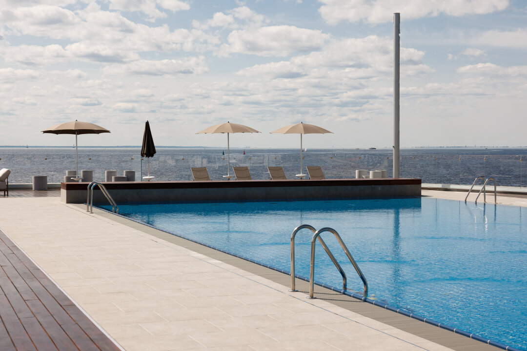 В конце июня в пространстве «Флагшток» состоялась большая премьера — два бассейна на Новокрестовской набережной: 50-метровый для взрослых и 20-метровый для детей. Петербуржцы смогут плавать в них круглый год: температура воды — от 22 до 28°C, а от волн и наползания льда берег защитит гидротехническое сооружение, которое, как утверждают организаторы, не имеет аналогов в России. На двух уровнях оборудуют сауну, душевые и раздевалки, террасу с гидромассажными ваннами, лаунж-зону, кафе.