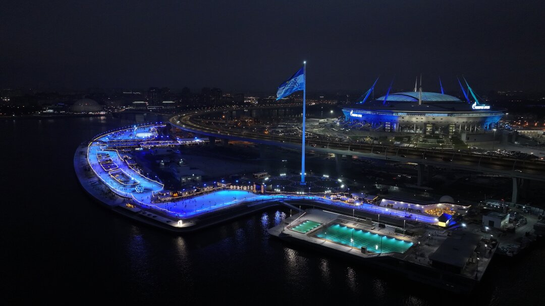 Морской фасад здорового человека — общественное пространство на Южной дороге — компания «Зенит-Арена» запустила в 2022 году. На территории более 24 000 квадратных метров разместили концертную площадку, веревочный парк, павильон для банкетов, фудкорт, зону отдыха с лежаками, самый большой каток в мире (работает только зимой!) и комплекс бассейнов на Новокрестовской набережной: 50-метровый для взрослых и 20-метровый для детей. Петербуржцы могут плавать в них круглый год: температура воды — от 22 до 28°C, а от волн и наползания льда берег защищает гидротехническое сооружение, которое, как утверждают организаторы, не имеет аналогов в России. На двух уровнях оборудовали сауну, душевые и раздевалки, лаунж-зону и кафе.