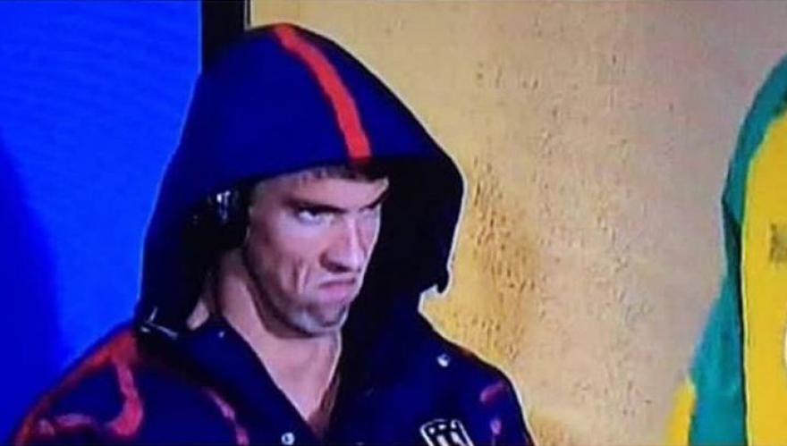 Что произошло: американский пловец Майкл Фелпс выиграл две золотые медали и стал 21-кратным олимпийским чемпионом. Перед заплывом камера запечатлела суровое выражение лица Фелпса. Как позднее объяснил сам Фелпс, перед началом соревнований он просто слушал музыку, настраивался и ничего даже не заметил.