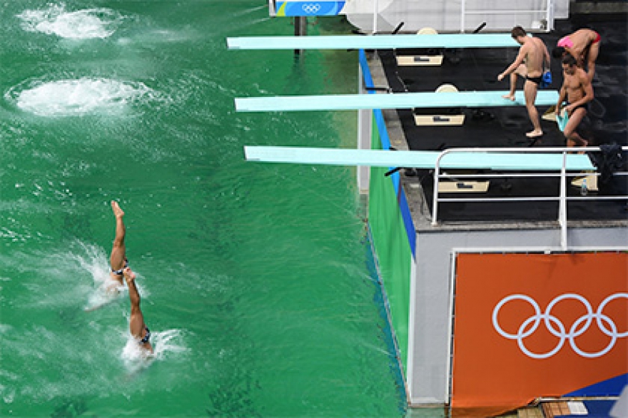 Что произошло: вода в бассейне для соревнований по прыжкам и синхронному плаванию окрасилась в темно-зеленый цвет и приобрела резкий запах. За это спортсмены прозвали бассейн «болотцем». Как выяснилось, изменение цвета с голубого на зеленый произошло по причине нехватки химикатов для очистки воды.