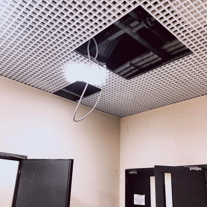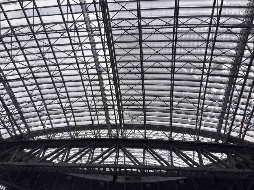 Взгляд сразу бросается на крышу. И она реально была закрыта не до конца. Не знаю, с чем это связано, но как так, ребята? Но и это не все. Откуда-то с крыши в некоторых местах капала вода. (Протечку официально подтвердил вице-губернатор Петербурга Игорь Албин и связал это с заводским браком светоотражающей пленки – Прим. ред.)