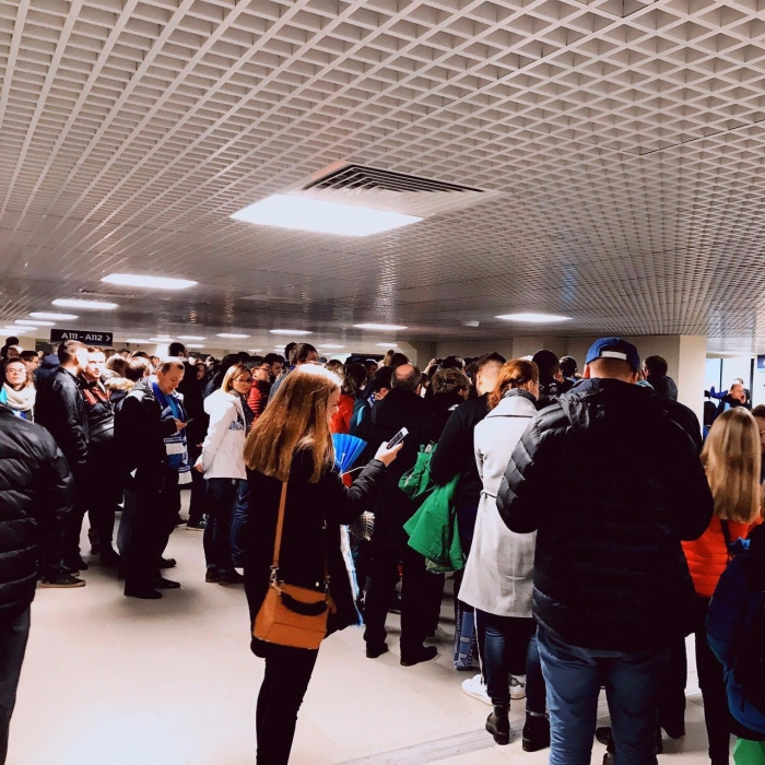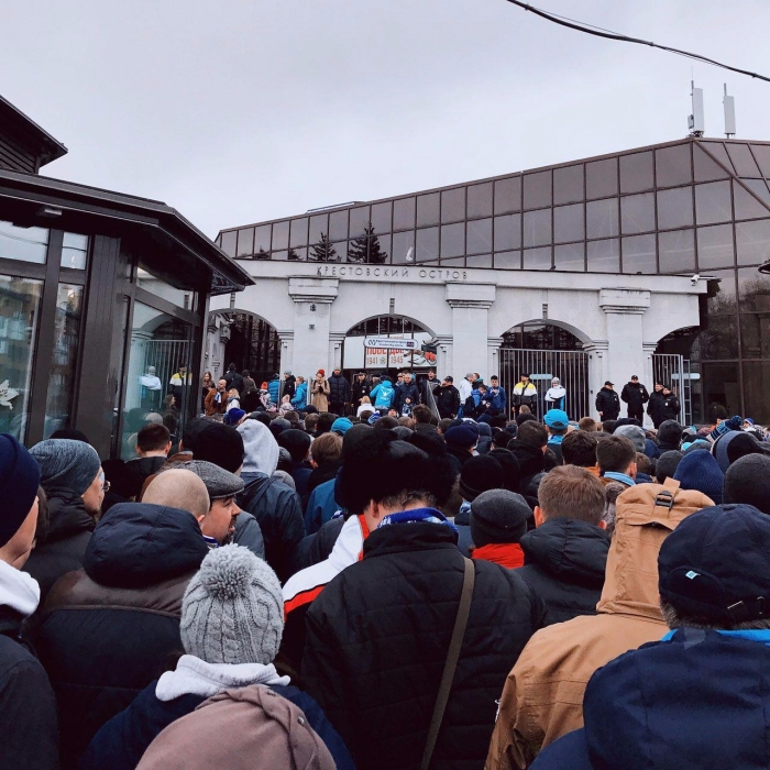 А вот с метро просак. Было 3 варианта выхода со стадиона: по южной или северной дорогам или по центральной аллее. Большинство народа пошло, конечно же, по аллее, меньшая часть выбрала дороги. Мы пошли по южной и вышли к автобусному кольцу, где фанатов весьма цивильно забирали автобусы и развозили дальше. Но какая часть людей знала об этом? Судя по давке у метро Крестовский остров, меньшая. В итоге я простоял в очереди на вход порядка 20 минут, только после этого сумев зайти и спуститься по эскалатору на станцию.