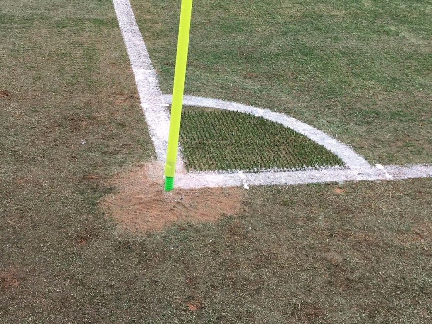 Теперь о том, как можно "наслаждаться матчем": мы купили места в первом ряду, у бровки. Видимо, в целях безопасности поле от трибун отделяют толстенные стекла. Но эти стекла грязнющие в хлам! Их даже не удосужились протереть. В принципе, по фото вы это видите. Стыд и срам, господа! Но главный их минус в том, что они закреплены в столбах. И эти столбы, чтоб их, напрочь перекрывают обзор в определенных частях футбольного поля. В итоге ты постоянно должен привставать, потому что можешь что-то не увидеть.