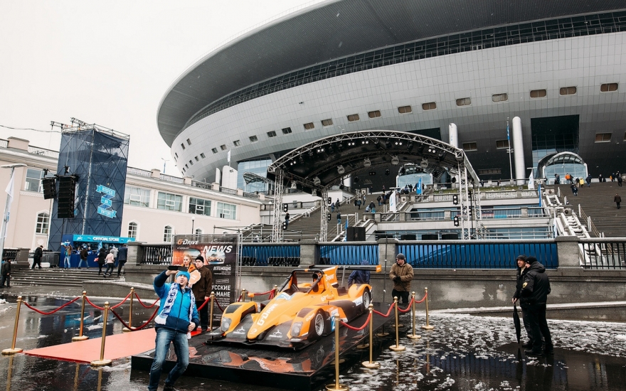 Отметим, что фанаты к комплексу «Санкт-Петербург» начали съезжаться еще задолго до матча. У главного входа на арену их ждал оранжевый болид команды G-Drive Racing - участницы чемпионата мира по автогонкам на выносливость FIA WEC и легендарных «24 часа Ле-Мана». Тут же можно было сфотографироваться и познакомиться с условиями участия в конкурсе «Хочу в Ле-Ман» от компании «Газпром нефть», главный приз которого — поездка во Францию.