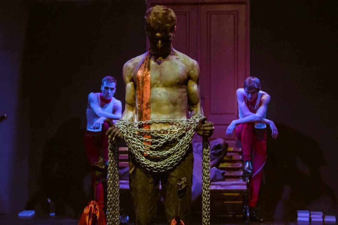 В четверг театр Николая Коляды покажет инсценировку романа Достоевского «Преступление и наказание», в которой все строится на желании Раскольникова хайпануть — совершить убийство ради славы в СМИ и соцсетях. Всех персонажей книги играют три молодых актера — Константин Итунин, Игорь Баркарь, Владислав Мелихов.