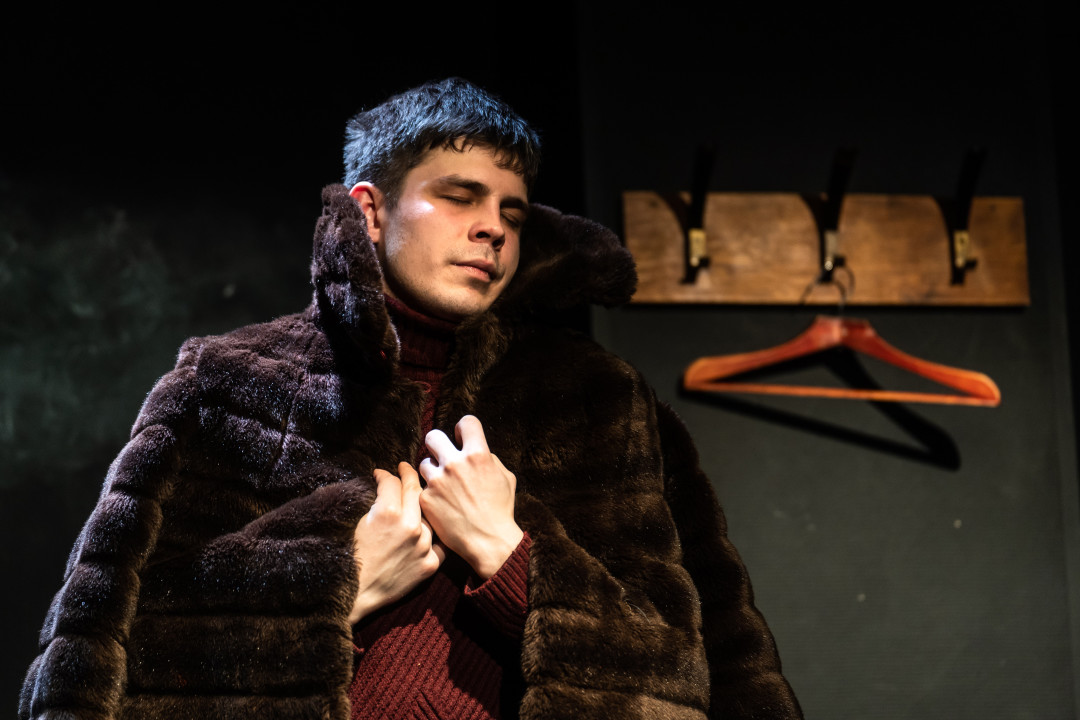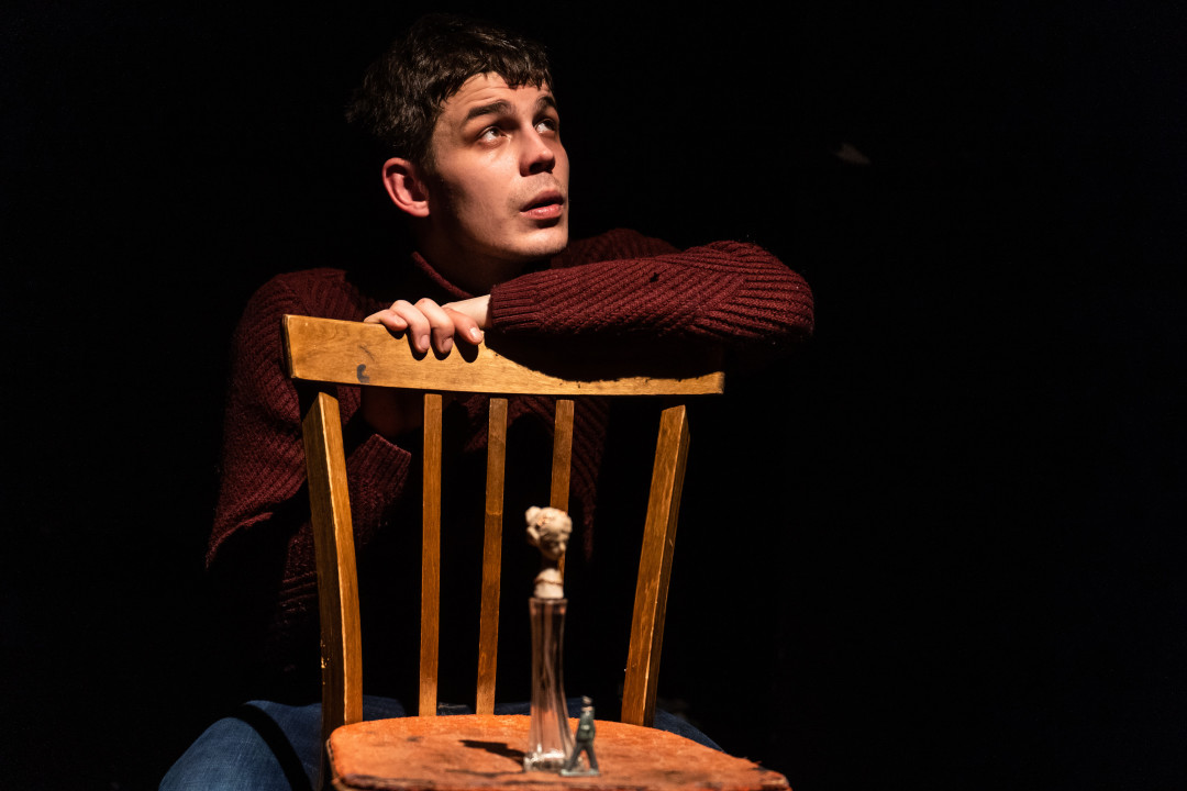 Перед началом спектакля к зрителям выходит режиссер Роман Бокланов, с головы до пят одетый в черное, и сообщает, что дверь на Малую сцену БТК сейчас закроют на ключ и выйти можно будет только после финала, иначе разрушится весь замысел. На пару мгновений становится, конечно, не по себе, но из-за той самой двери немедленно появляется актер Максим Морозов с картонной коробкой подмышкой, крохотное сценическое пространство заливает теплый свет и с внутренней тревоги внимание немедленно переключается на действие.