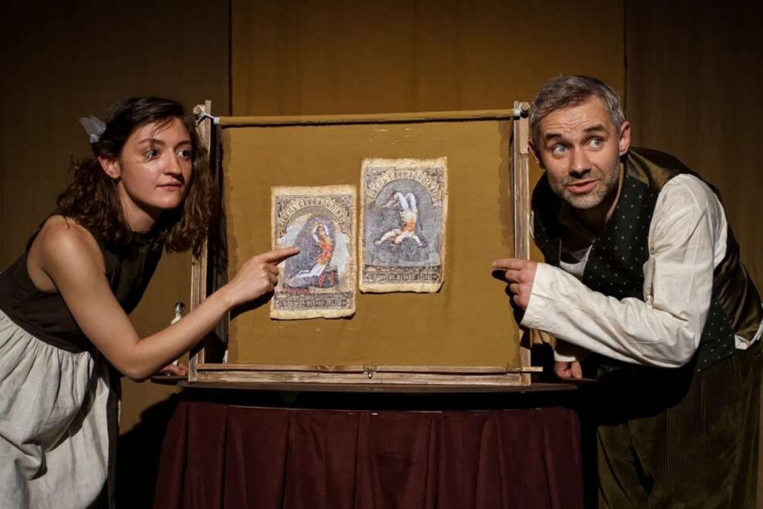 Главный режиссер театра «Мастерская» Роман Габриа из всех сюжетов шестого романа Федора Михайловича Достоевского «Бесы» больше всего заинтересовался темой старшего и младшего Верховенских. Историю семейных страстей он вместе с художником Николаем Слободяником помещают в балаган, где жуткое видится смешным, демоны превращаются в паяцев, монструозные физиономии выглядят карикатурными. А прием кросс-кастинга (когда актер или актриса исполняют роль персонажа противоположного пола) предельно театрализует мир романа Достоевского.