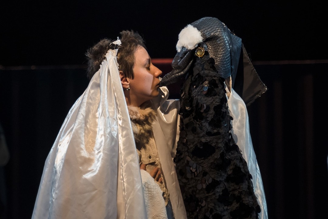 Ученик Анатолия Праудина Александр Никаноров снова ставит в «ЦЕХе». И снова не ищет легких путей, выбрав наименее растиражированную пьесу Ивана Вырыпаева «Чему я научился у змеи». Предсмертное письмо — монолог корабельного доктора Генриха Вальца, обращенный к маленькому сыну. Врач после гибели своего судна оказался на необитаемом острове. Как водится у Вырыпаева, внешние обстоятельства — это лишь импульс для обобщающих философствований. Рассуждения Генриха о стакане, полном до краев, борьбе со скептицизмом, тьме и цветке под актуальный саундтрек визуализирует актерский квартет, состоящий из Александры Мамкаевой, Анастасии Гиревой, Андрея Сунцова и Александра Лушина.