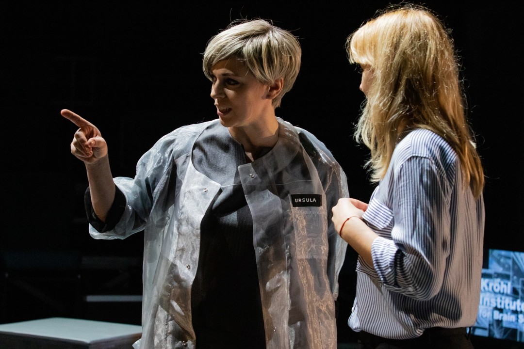 «Проблема» — это вновь обращение худрука РАМТ Алексея Бородина к пьесе ныне живущего британского классика Тома Стоппарда (в 2007-м он с размахом поставил «Берег Утопии»). Действие на этот раз происходит в Институте изучения мозга, который, конечно, прообраз всего общества. Юные и более опытные ученые, легко перебрасываясь профессиональной терминологией, страстно спорят и доказывают друг другу, что есть решения у проблем, как вполне вселенского размаха, так и странных в своей локальности.