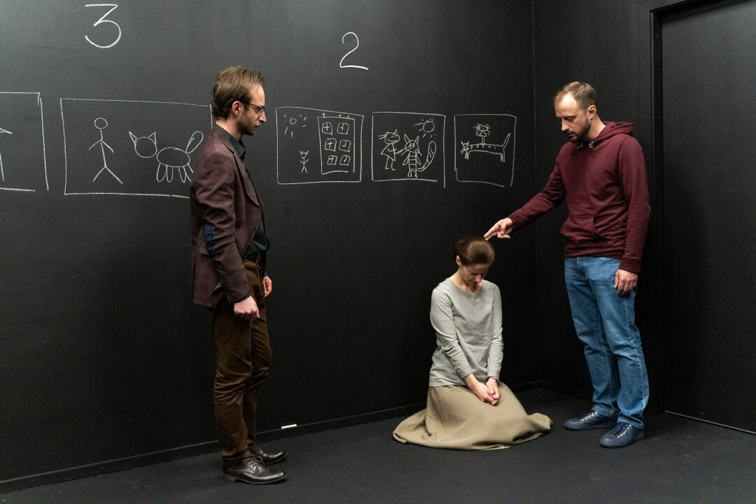 В театре «На Литейном» продолжаются показы недавней премьеры — спектакля лауреата «Золотой маски» Кирилла Люкевича «Голова» по пьесе Константина Стешика. Впервые текст представили в программе «Первая читка» фестиваля «Пять вечеров» в этому году. Это абсурдистская история, как найденная на улице голова человека оказывается оракулом, знающим про «тайны жизни, вселенной и всего такого». В спектакле пять персонажей: Я (Виталий Гудков), Пухов (Сергей Матвеев), Палкин (Николай Красноперов), Голова (Павел Путрик), Экскурсовод (Татьяна Болдина).