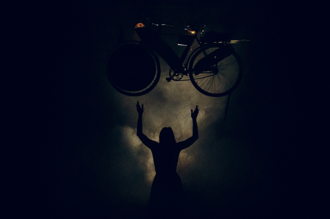 «Липкая грязь, серость, небо без крыльев и пылающий космос внутри. Вырвется ли мечта наружу? Присоединяйся к фантасмагорическому аттракциону, лети прочь из унылой овощебазы, спаси в себе велосипед!» — добавляют авторы спектакля.