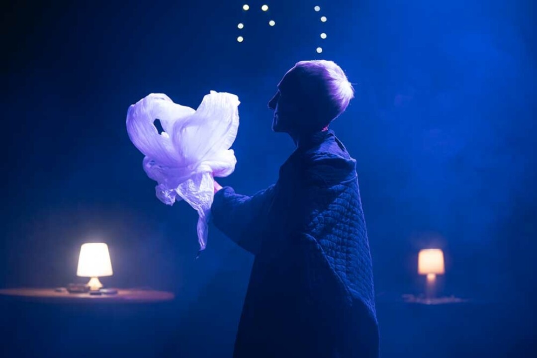 Авторская драма Розы Хайруллиной «Однажды» — это вольный пересказ пьесы Александра Углова «Интервью» о сложных созависимых отношениях между авангардным поэтом Даниилом Хармсом и его женой и музой Мариной Малич (Дурново). Нарратив спектакля разворачивается почти без слов, а сильные эмоции и сложные чувства актеры Роза Хайруллина, Евгений Козлов и Юлия Галкина выражают пластически.