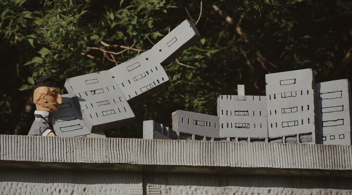 И достаточно последовать за проводником, чтобы увидеть тени двух архитекторов — и услышать их разговор, увидеть кукольный спектакль про самого Левинсона и поразмышлять о том, как сталкиваются воля художника и реальность, как театр вырастает из самой плоти дома, и встретиться с Душой дома.