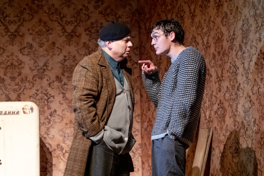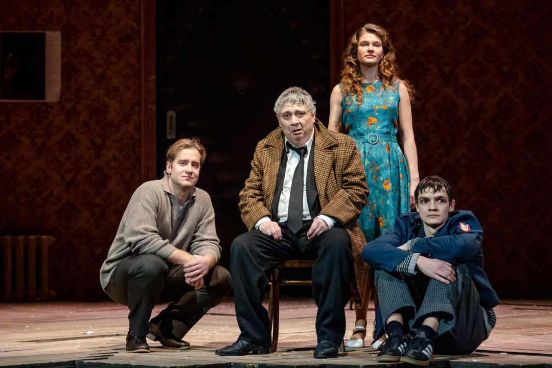 «Старший сын» Галины Зальцман открывается знаменитым «Русским вальсом» Дмитрия Шостаковича в исполнении духового оркестра. Эта музыка, торжественно-печальная и ностальгически-сентиментальная, становится лейтмотивом и лирическим центром спектакля, главный герой которого — Андрей Григорьевич Сарафанов. Его играет Александр Новиков. Робко протиснувшись в приоткрытую дверь прихожей, тот входит на сцену, будто извиняясь. Внешне ничем не примечателен: классический берет, клетчатое пальто, авоська с продуктами, из которой торчит кларнет, воткнутый кое-как, без футляра. Нерешительно мнется на пороге и присаживается тут же, у двери, на батарею, над которой висит репродукция картины Рембрандта «Возвращение блудного сына». Будто вовсе не его эта квартира, и нет у него прав здесь находится. Словно виноват в чем-то, кругом виноват...