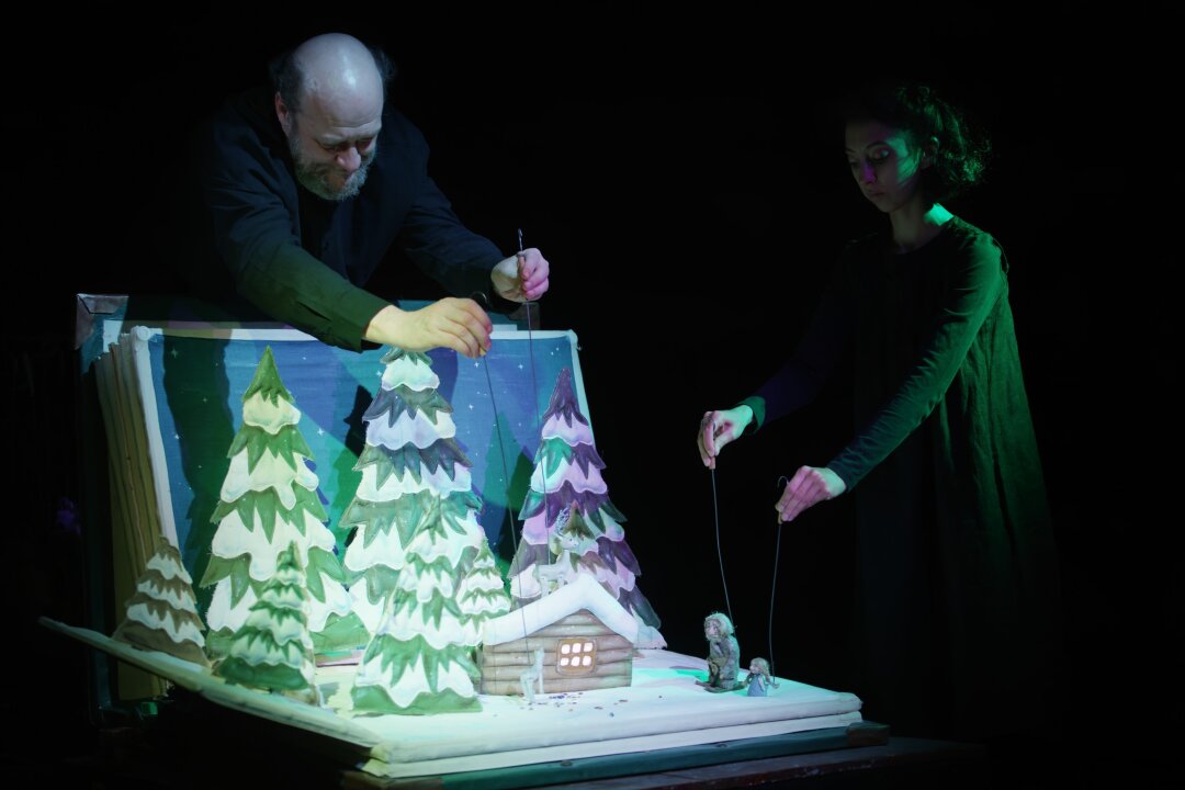 Для сказочной истории про волшебного козла (иногда его деликатно называют оленем), одаривающего того, кто его увидел, драгоценными камнями, постановщик Григорий Лайко придумал небанальное решение. Рассказчик — сама книга, разговаривающая голосом актера Александра Кошкидько. С первоисточником автор спектакля обходится предельно бережно, сохраняя присущую ему интонацию. А художник Мария Мурашова очевидно вдохновлялась традиционной уральской вышивкой и искусством лоскутного шитья: ее куклы созданы в стиле обаятельной тавлинской игрушки. По окончании спектакля каждый юный участник получает в дар цветной камушек. Ведь это история не только о чуде, но и о происхождении хризолита.
