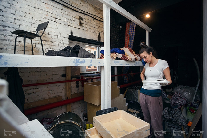 Полтора месяца я искал эту площадку. Садился на мопед, с утра до вечера ездил по городу, искал помещение, а потом созванивался с арендодателями, подбирал варианты. Это был ритуал – каждый день как на работу. Мы построились за два месяца, несколько раз приходилось останавливать стройку из-за финансовых трудностей, но нам помогали многие наши педагоги, не только материально, но и физически: красили стены, заливали полы... Мы два раза оттягивали открытие, потом поставили себе дедлайн и достроились за три дня. Утром в день открытия мы доделывали деревянный пол, еще краска досыхала, а вечером показывали спектакль «ФутуризмЗрим». Сейчас мы практически закончили стройку, доделываем гримерку и другие мелочи. После этого мы сможем полноценно приступить к репетициям и сосредоточиться на спектаклях».