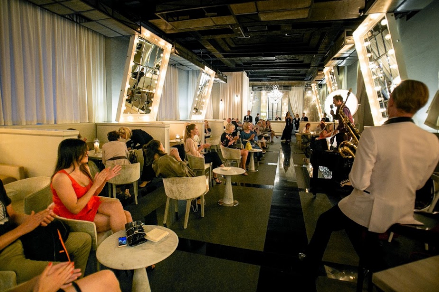 Шоу в «Ленинград Центре» не кончается после того, как на сцену опускается занавес. Развлекательная программа перемещается в Белый бар, где гостей ждут артисты на импровизированный концерт. Под аккомпанемент рояля и саксофона здесь звучат джазовые джемы и романтические баллады.