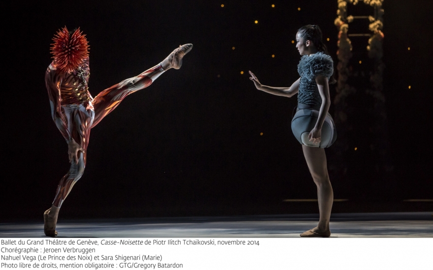 Хореограф Йерон Вербрюгген вдохновлялся фильмами Тима Бертона. Поэтому у него вышла не добрая сказка, а фантастическая «картинка», вполне достойная киноэкрана. Вербрюгген прежде танцевал в Балете Монте-Карло, а три года назад с этого весьма успешного «Щелкунчика» в Большом театре Женевы начал карьеру хореографа. Он убирает из сказки тему рождественских праздников – эта история может происходить в любое время. В ней главная героиня – неуклюжий подросток, склонная к вызову и бунту, но в то же время стремящаяся к обществу более взрослых девиц, которые над ней смеются. Хореограф изобретателен в сочинении триллера и его балет, вероятно, понравился бы Гофману, мрачные фантазии которого более ста лет подряд укрощали другие балетмейстеры.