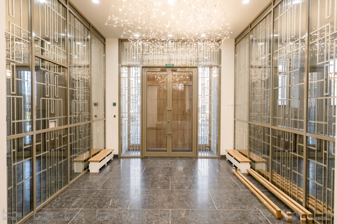 Для посетителей театра создан отдельный вход со стороны Введенской улицы, здесь предусмотрены кассовая и буфетная зоны. При строительстве использовалось дерево, несколько видов травертина (тип горной породы), карельский мрамор. В зале есть ротонда, в ней, возможно, будут проходить выставки.