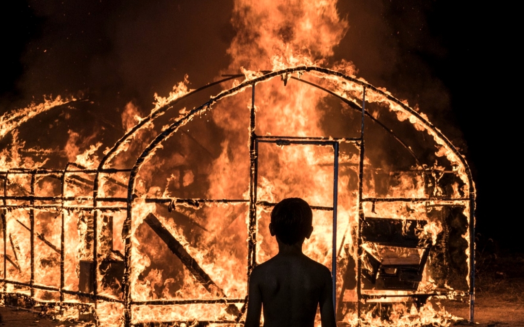Картина от режиссера и бывшего министра Южной Кореи Ли Чхан-дон не только получила приз ассоциации кинокритиков на Каннском фестивале, но и была претендентом на Золотую Пальмовую ветвь. Литературная основа сценария «Пылающего» – небольшой рассказ японского писателя Харуки Мураками «Сжечь сарай». В этой новелле практически ничего не происходит: главный герой мечется от тоски, героиня исчезает, третий персонаж, Бен, хоть и признается в пиромании, ничего не сжигает. Хотя Мураками принимал участие в написании сценария, у Ли Чхан-дона из лирической зарисовки получилась огромная экзистенциальная драма, скрещенная с психологическим триллером.