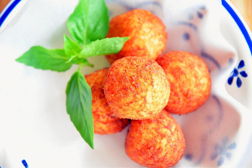 - Аранчини с баклажанами, гуанчале и томатным соусом
