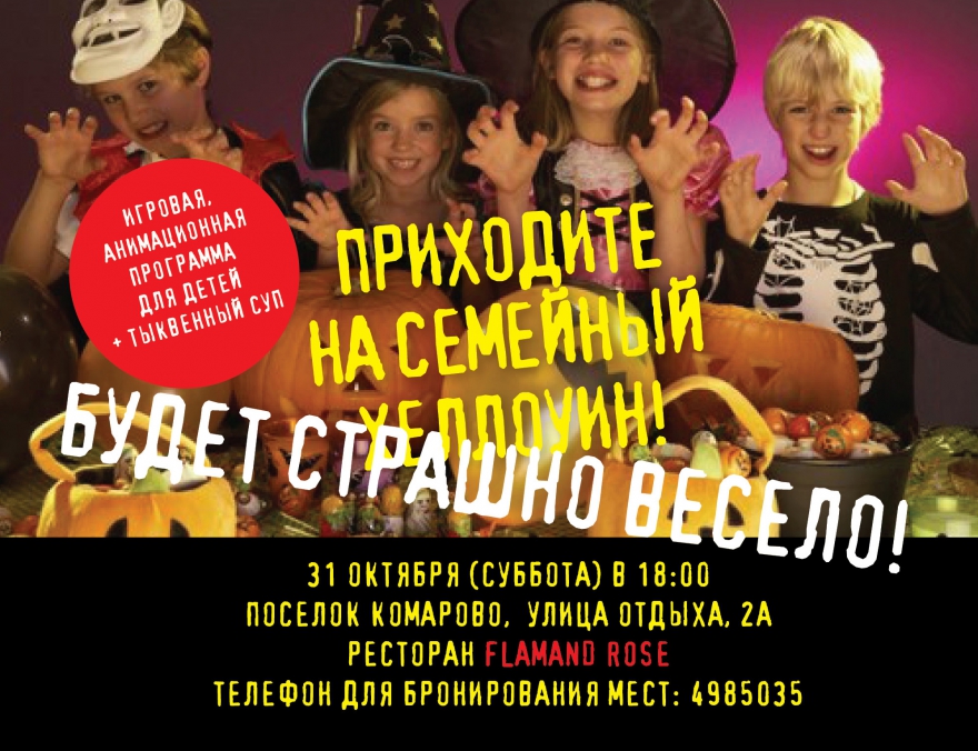 Приходите на семейный Хеллоуин: игровая, анимационная программа для детей и тыквенный суп.
