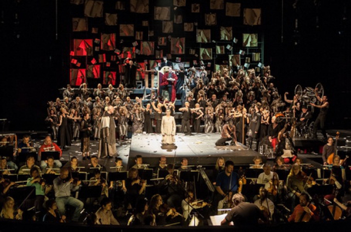 Один из блокбастеров Александринского фестиваля: сделанная в духе авангардистского тотального театра постановка выдающегося венгерского режиссера, худрука Национального Венгерского театра Аттилы Виднянского. Спектакль основан на оратории Артюра Онеггера на текст поэмы Поля Клоделя (1935, в русском переводе: «Жанна д'Арк на костре»). тому вполне логично, что Виднянский известен не только как автор драматических, но оперных спектаклей; и даже как директор Венгерской оперы. «Йоханна на костре» — монументальная техно-оратория с расширенным составом оркестра (более 70 пультов), драматическими артистами, вокалистами, тремя хорами, пластическим ансамблем, перемещением модулей сцены, подвесных площадок и визуальных конструкций, вроде проплывающего над сценой огненного ангела, беспримерным сценическим светом и живым пламенем.