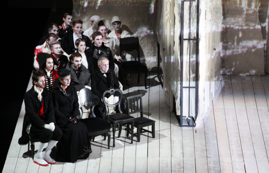 Еще одна новинка этого года, которой стоит уделить внимание — «Война и мир Толстого» в постановке художественного руководителя Центра имени Мейерхольда Виктора Рыжакова. Он создал собсвтенный вариант эпопеи — «путеводитель по роману», не предусматривающий ни дословного пересказа, ни иллюстрирования текста, а лишь погружение в некоторые его эпизоды. В качестве «гида-переводчика» выступит хранительница некоего музея «Войны и мира» Наташа Ростова, полная тезка героини книги. Она знакомит зрителей с семьями Ростовых, Болконских, Курагиных, мирное течение жизни которых нарушает война. В этой сюжетообразующей роли экскурсовода по пространству романа занята Алиса Фрейндлих, во всех остальных — корифеи театра и молодые артисты труппы.