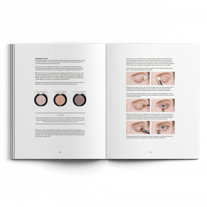 Книга с подобными инструкциями для контурирования, макияжа глаза, губ и не только обойдётся в 2850 рублей. Также доступно подарочное издание с сумкой-авоськой и набором открыток (3600 руб.). Общий тираж книги составляет 28500 экземпляров.